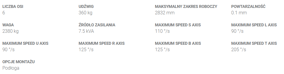 GP360 to 6-osiowy robot przemysłowy zaprojektowany do pracy z dużymi obciążeniami. Oferuje udźwig 360 kg oraz zasięg roboczy 2832 mm, co czyni go idealnym rozwiązaniem do obsługi ciężkich elementów w różnych branżach.